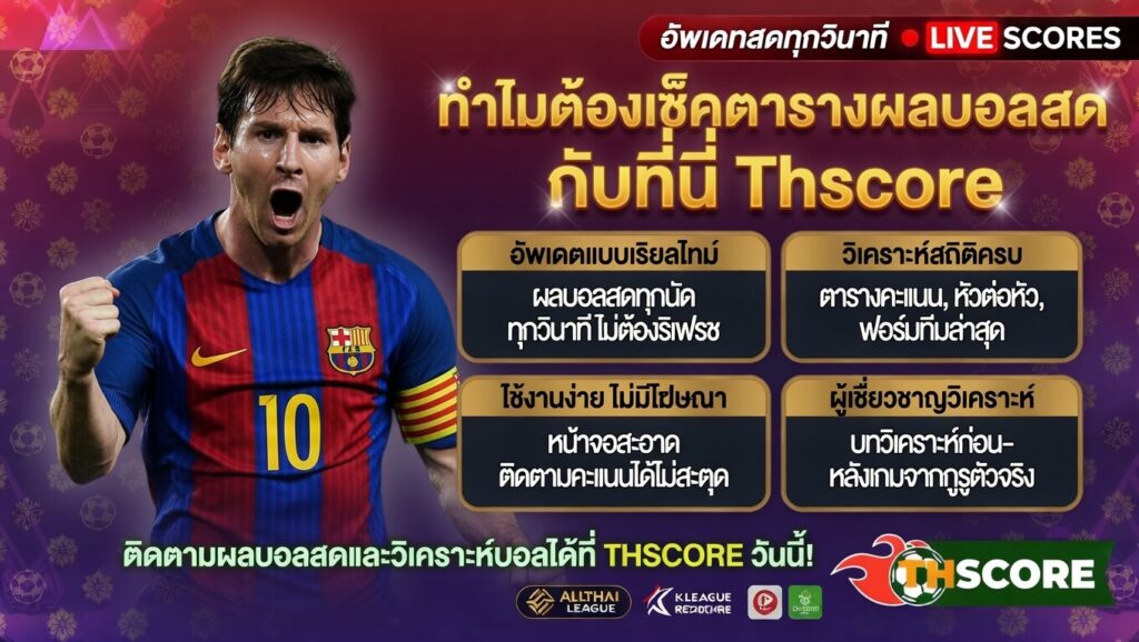 Thscore ผลบอลสด บ้านผลบอล อัปเดตเรียลไทม์ ครบทุกลีกทั่วโลก
